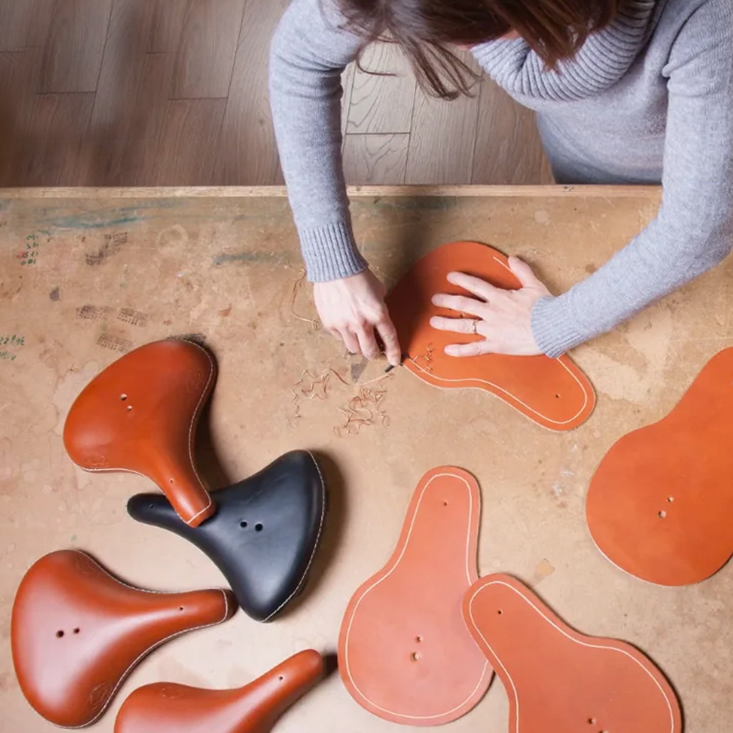 Set: Ledersattel mit Griffen aus Leder – handmade in Italy
